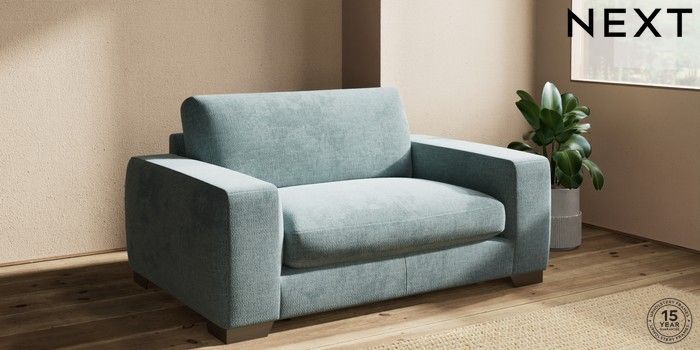 7.2.10 Houghton Deep Sit 2 Seater Small Sofa Chunky Chenille Light Teal Green Large Square Angle - Gunmetal | Made Click here to use our website with more accessibility support, for example screen readers