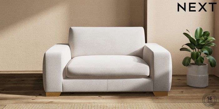 7.2.10 Houghton Deep Sit 2 Seater Small Sofa Chunky Chenille Oyster Large Square Angle - Brushed Brass | Made Click here to use our website with more accessibility support, for example screen readers