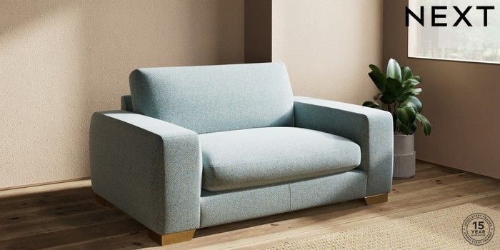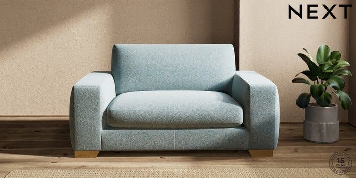 7.2.10 Houghton Deep Sit 2 Seater Small Sofa Chunky Marl Mid Blue Large Square Angle - Brushed Brass | Made Click here to use our website with more accessibility support, for example screen readers