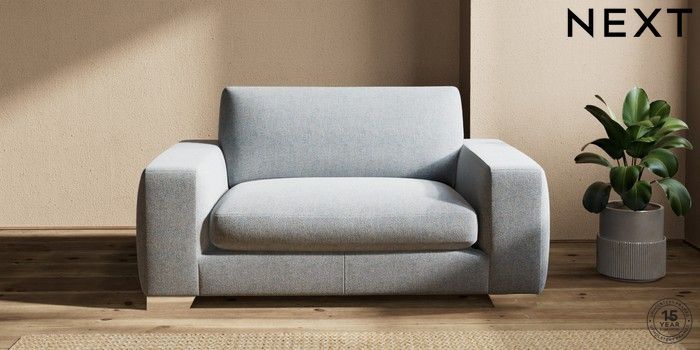 7.2.10 Houghton Deep Sit 2 Seater Small Sofa Chunky Marl Mid Grey Large Square Angle - Chrome Metal | Made Click here to use our website with more accessibility support, for example screen readers