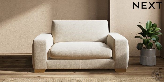 7.2.10 Houghton Deep Sit 2 Seater Small Sofa Chunky Weave Cream Large Square Angle - Brushed Brass | Made Click here to use our website with more accessibility support, for example screen readers