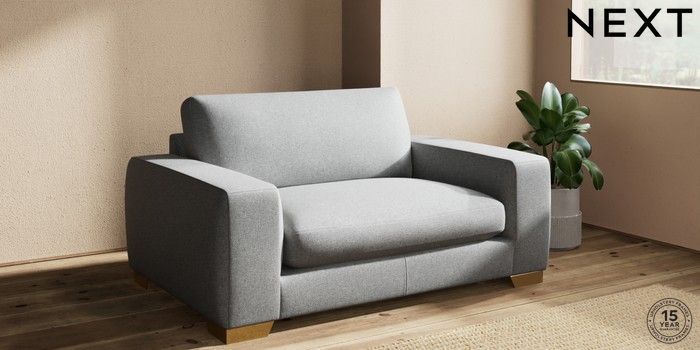 7.2.10 Houghton Deep Sit 2 Seater Small Sofa Chunky Weave Mid Grey Large Square Angle - Brushed Brass | Made Click here to use our website with more accessibility support, for example screen readers