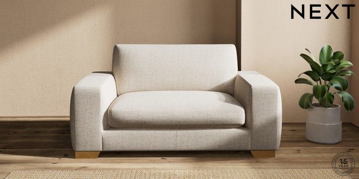 7.2.10 Houghton Deep Sit 2 Seater Small Sofa Chunky Weave Mid Natural Large Square Angle - Brushed Brass | Made Click here to use our website with more accessibility support, for example screen readers