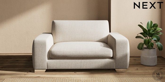 7.2.10 Houghton Deep Sit 2 Seater Small Sofa Chunky Weave Mid Natural Large Square Angle - Chrome Metal | Made Click here to use our website with more accessibility support, for example screen readers
