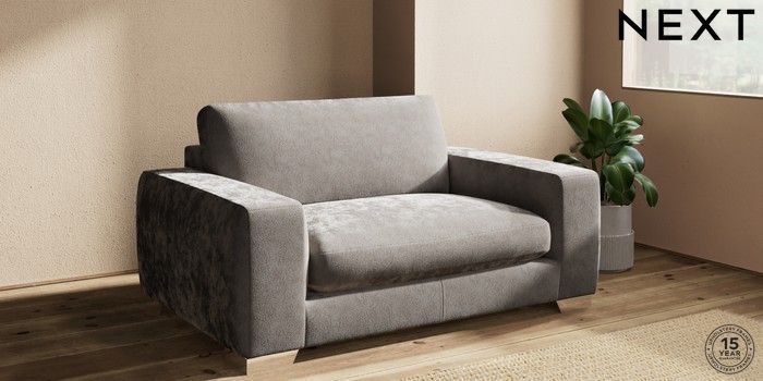 7.2.10 Houghton Deep Sit 2 Seater Small Sofa Distressed Velour French Grey Large Square Angle - Chrome Metal | Made Click here to use our website with more accessibility support, for example screen readers