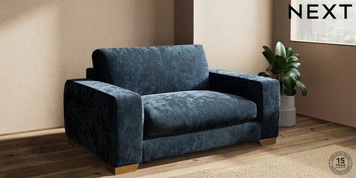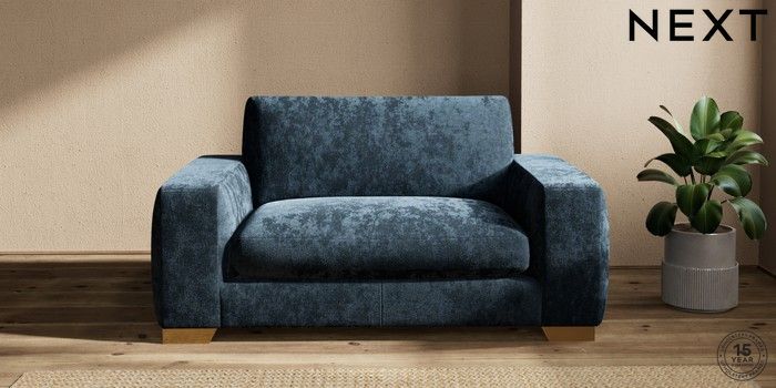 7.2.10 Houghton Deep Sit 2 Seater Small Sofa Distressed Velour Midnight Blue Large Square Angle - Brushed Brass | Made Click here to use our website with more accessibility support, for example screen readers