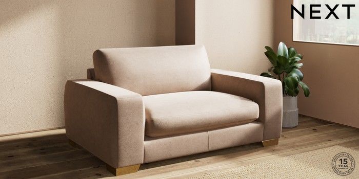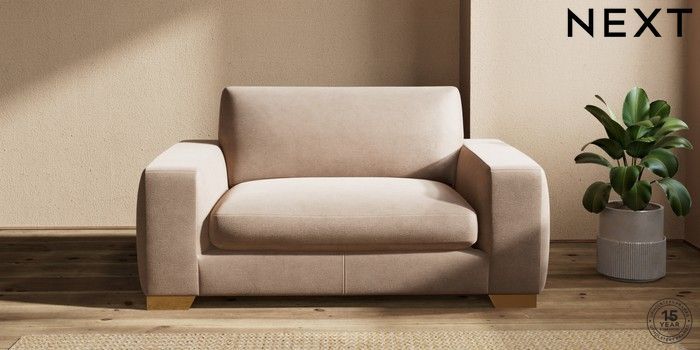 7.2.10 Houghton Deep Sit 2 Seater Small Sofa Luxe Chenille Mid Natural Large Square Angle - Brushed Brass | Made Click here to use our website with more accessibility support, for example screen readers