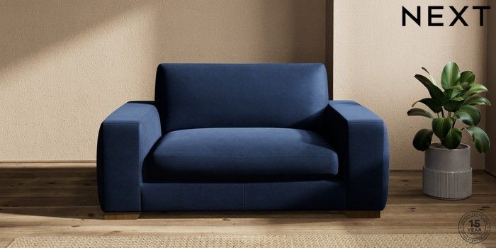 7.2.10 Houghton Deep Sit 2 Seater Small Sofa Luxe Chenille Navy Blue Large Square Angle - Mid | Made Click here to use our website with more accessibility support, for example screen readers