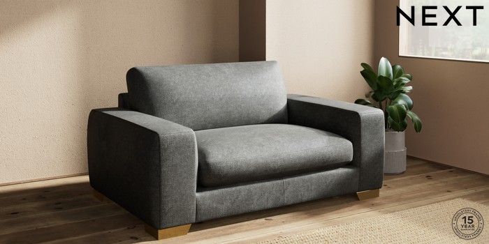 7.2.10 Houghton Deep Sit 2 Seater Small Sofa Plush Chenille Dark Grey Large Square Angle - Brushed Brass | Made Click here to use our website with more accessibility support, for example screen readers