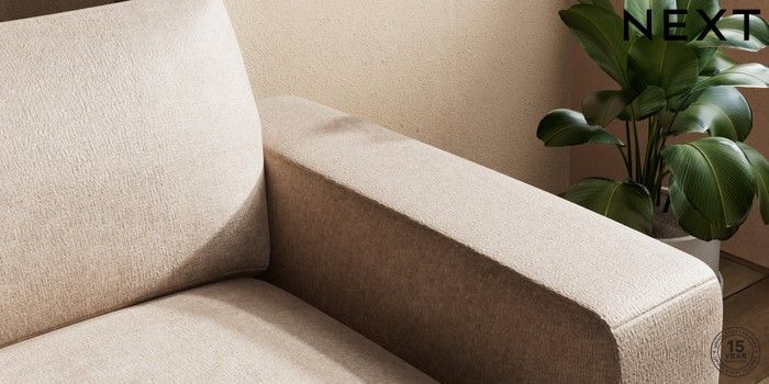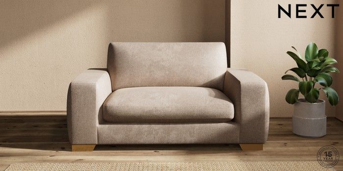 7.2.10 Houghton Deep Sit 2 Seater Small Sofa Plush Chenille Mid Natural Large Square Angle - Brushed Brass | Made Click here to use our website with more accessibility support, for example screen readers