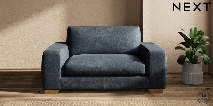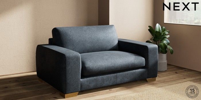 7.2.10 Houghton Deep Sit 2 Seater Small Sofa Plush Chenille Slate Blue Large Square Angle - Brushed Brass | Made Click here to use our website with more accessibility support, for example screen readers