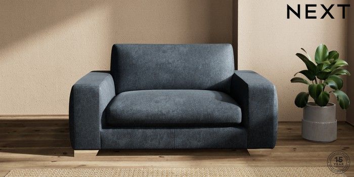 7.2.10 Houghton Deep Sit 2 Seater Small Sofa Plush Chenille Slate Blue Large Square Angle - Chrome Metal | Made Click here to use our website with more accessibility support, for example screen readers