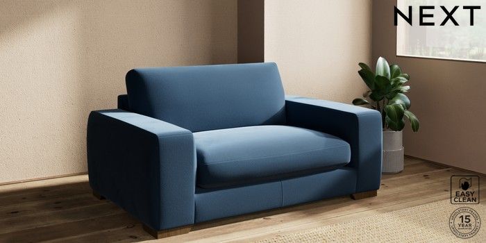 7.2.10 Houghton Deep Sit 2 Seater Small Sofa Plush Velvet Easy Clean Airforce Blue Large Square Angle - Mid | Made Click here to use our website with more accessibility support, for example screen readers