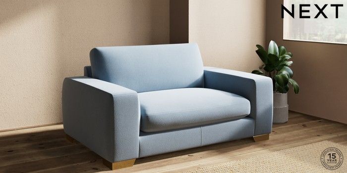 7.2.10 Houghton Deep Sit 2 Seater Small Sofa Relaxed Linen Look Mid Blue Large Square Angle - Brushed Brass | Made Click here to use our website with more accessibility support, for example screen readers