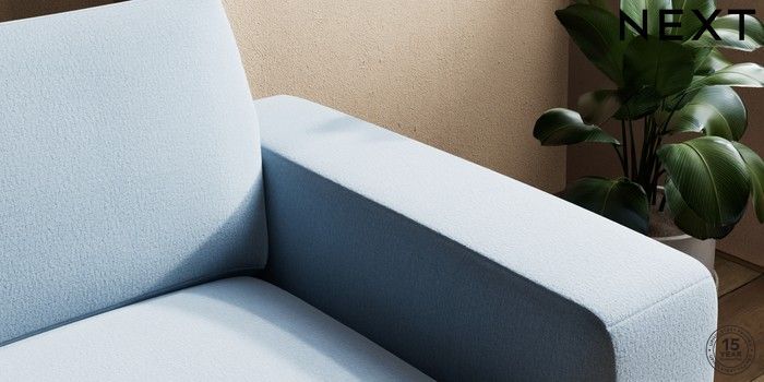 7.2.10 Houghton Deep Sit 2 Seater Small Sofa Relaxed Linen Look Mid Blue Large Square Angle - Chrome Metal | Made Click here to use our website with more accessibility support, for example screen readers