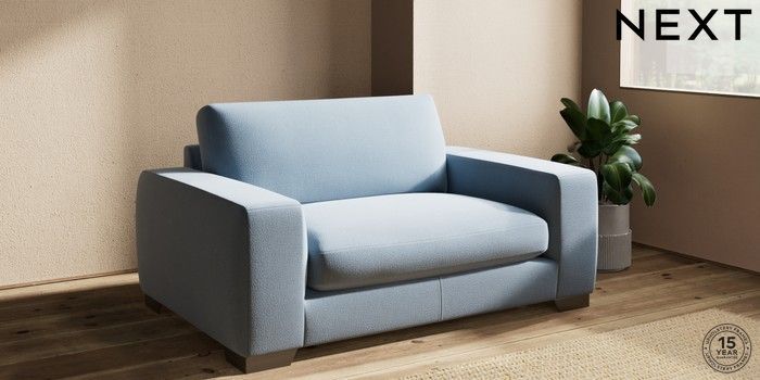7.2.10 Houghton Deep Sit 2 Seater Small Sofa Relaxed Linen Look Mid Blue Large Square Angle - Gunmetal | Made Click here to use our website with more accessibility support, for example screen readers