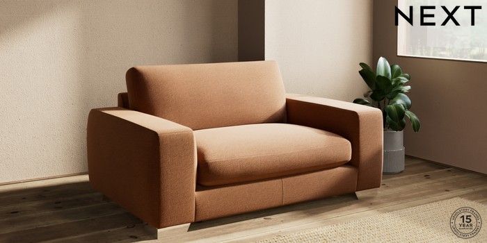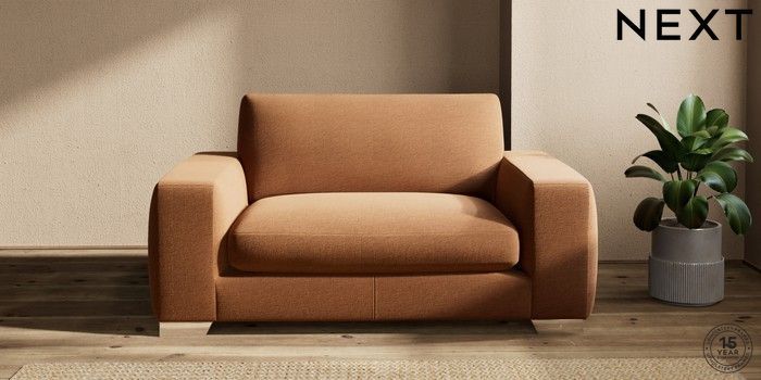 7.2.10 Houghton Deep Sit 2 Seater Small Sofa Ripple Chenille Mid Rust Brown Large Square Angle - Chrome Metal | Made Click here to use our website with more accessibility support, for example screen readers
