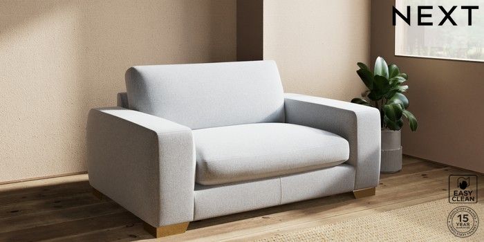 7.2.10 Houghton Deep Sit 2 Seater Small Sofa Tweedy Blend Easy Clean Light Silver Grey Large Square Angle - Brushed Brass | Made Click here to use our website with more accessibility support, for example screen readers