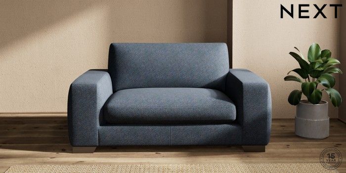 7.2.10 Houghton Deep Sit 2 Seater Small Sofa Tweedy Chenille Navy Blue Large Square Angle - Gunmetal | Made Click here to use our website with more accessibility support, for example screen readers