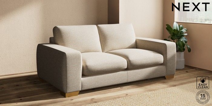 7.2.10 Houghton Deep Sit 3 Seater Small Sofa Boucle Weave Easy Clean Dark Natural Large Square Angle - Brushed Brass | Made Click here to use our website with more accessibility support, for example screen readers