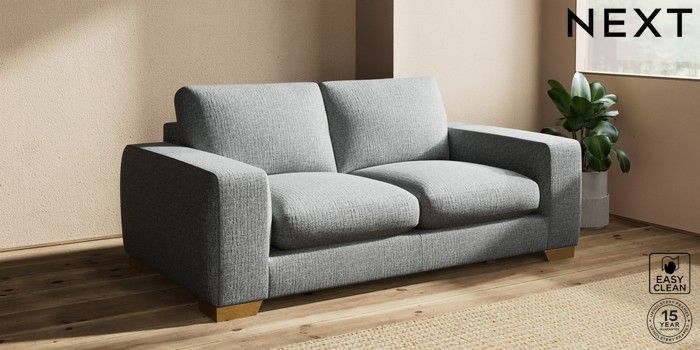 7.2.10 Houghton Deep Sit 3 Seater Small Sofa Chunky Boucle Easy Clean Mid Grey Large Square Angle - Brushed Brass | Made Click here to use our website with more accessibility support, for example screen readers