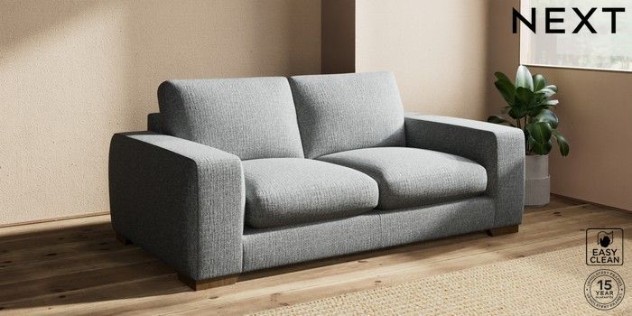 7.2.10 Houghton Deep Sit 3 Seater Small Sofa Chunky Boucle Easy Clean Mid Grey Large Square Angle - Mid | Made Click here to use our website with more accessibility support, for example screen readers