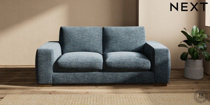 7.2.10 Houghton Deep Sit 3 Seater Small Sofa Chunky Chenille Dark Navy Blue Large Square Angle - Mid | Made Click here to use our website with more accessibility support, for example screen readers