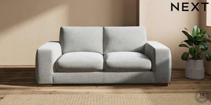 7.2.10 Houghton Deep Sit 3 Seater Small Sofa Chunky Chenille Light Grey Large Square Angle - Mid | Made Click here to use our website with more accessibility support, for example screen readers