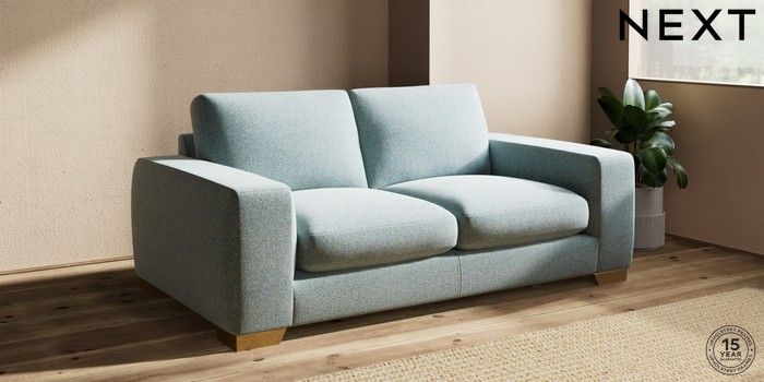7.2.10 Houghton Deep Sit 3 Seater Small Sofa Chunky Marl Mid Blue Large Square Angle - Brushed Brass | Made Click here to use our website with more accessibility support, for example screen readers