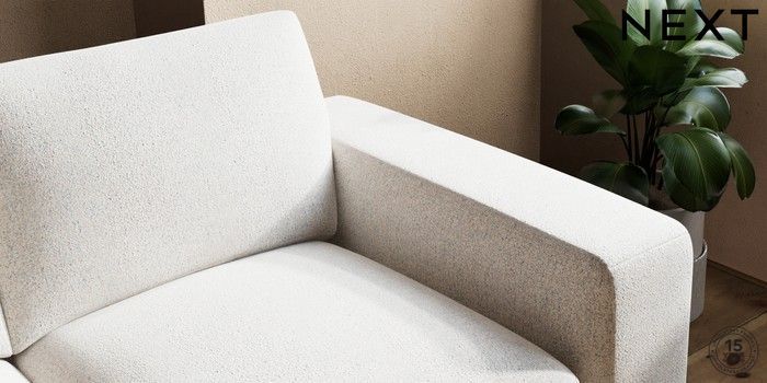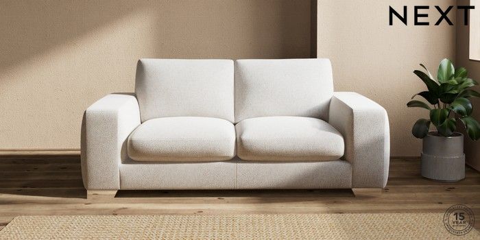 7.2.10 Houghton Deep Sit 3 Seater Small Sofa Chunky Marl Oyster Large Square Angle - Chrome Metal | Made Click here to use our website with more accessibility support, for example screen readers