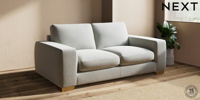 7.2.10 Houghton Deep Sit 3 Seater Small Sofa Chunky Texture Dove Large Square Angle - Brushed Brass | Made Click here to use our website with more accessibility support, for example screen readers