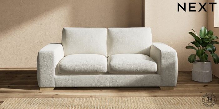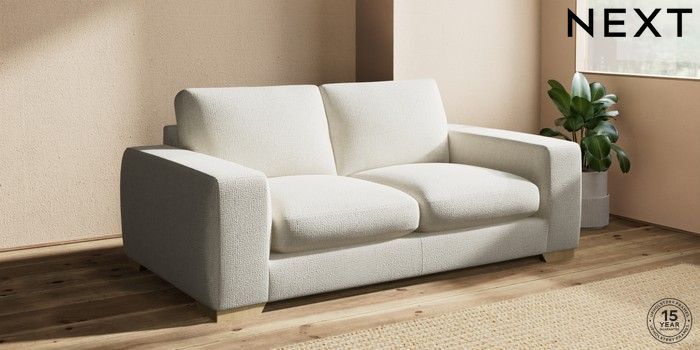 7.2.10 Houghton Deep Sit 3 Seater Small Sofa Chunky Texture Oyster Large Square Angle - Light | Made Click here to use our website with more accessibility support, for example screen readers