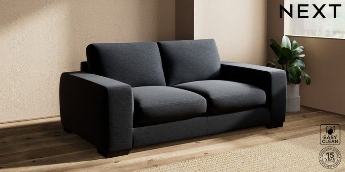 7.2.10 Houghton Deep Sit 3 Seater Small Sofa Fine Chenille Easy Clean Black Large Square Angle - Dark | Made Click here to use our website with more accessibility support, for example screen readers