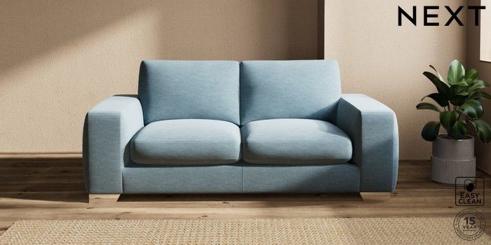 7.2.10 Houghton Deep Sit 3 Seater Small Sofa Fine Chenille Easy Clean Mid Blue Large Square Angle - Chrome Metal | Made Click here to use our website with more accessibility support, for example screen readers