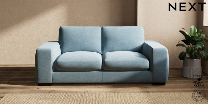 7.2.10 Houghton Deep Sit 3 Seater Small Sofa Fine Chenille Easy Clean Mid Blue Large Square Angle - Dark | Made Click here to use our website with more accessibility support, for example screen readers