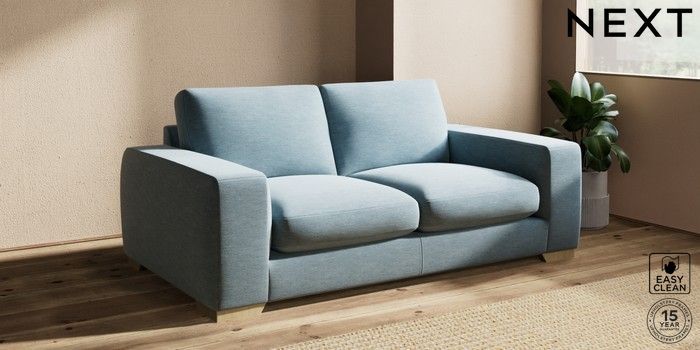 7.2.10 Houghton Deep Sit 3 Seater Small Sofa Fine Chenille Easy Clean Mid Blue Large Square Angle - Light | Made Click here to use our website with more accessibility support, for example screen readers