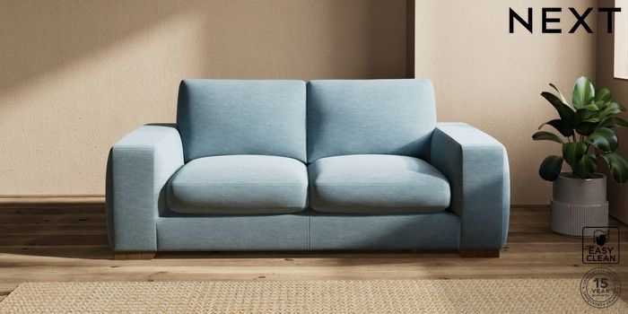 7.2.10 Houghton Deep Sit 3 Seater Small Sofa Fine Chenille Easy Clean Mid Blue Large Square Angle - Mid | Made Click here to use our website with more accessibility support, for example screen readers