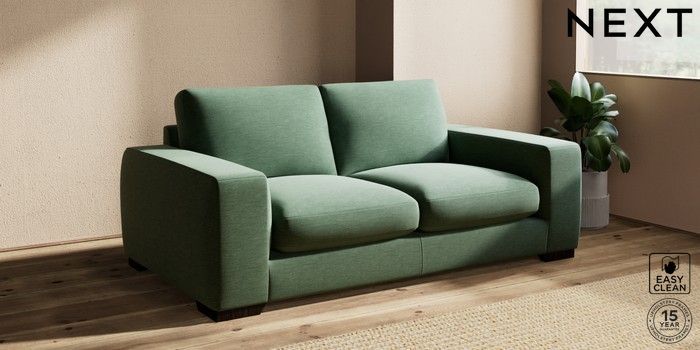 7.2.10 Houghton Deep Sit 3 Seater Small Sofa Fine Chenille Easy Clean Mid Khaki Green Large Square Angle - Dark | Made Click here to use our website with more accessibility support, for example screen readers