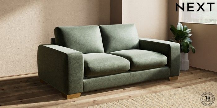 7.2.10 Houghton Deep Sit 3 Seater Small Sofa Luxe Chenille Mid Green Large Square Angle - Brushed Brass | Made Click here to use our website with more accessibility support, for example screen readers