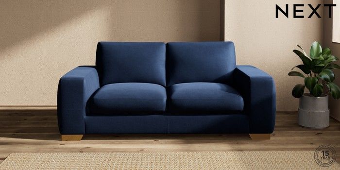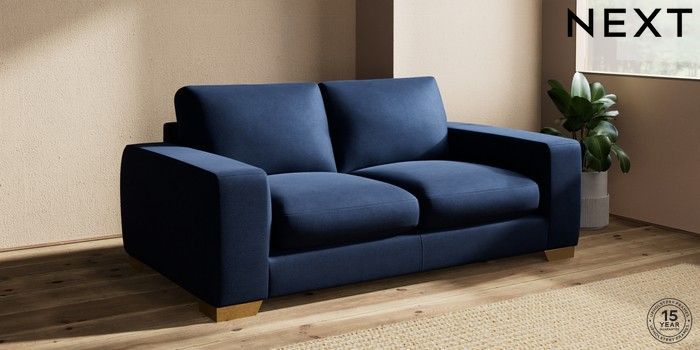 7.2.10 Houghton Deep Sit 3 Seater Small Sofa Luxe Chenille Navy Blue Large Square Angle - Brushed Brass | Made Click here to use our website with more accessibility support, for example screen readers