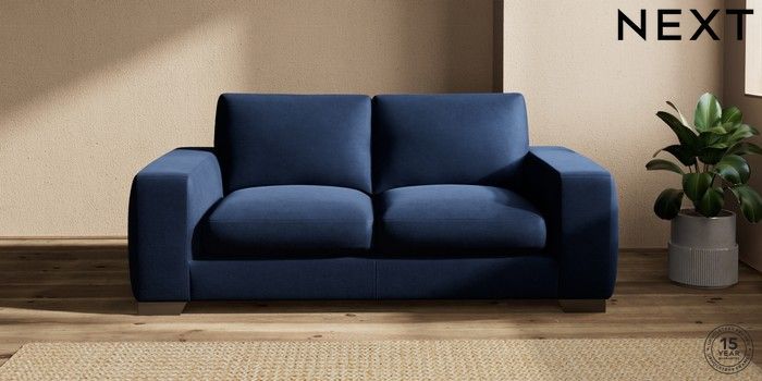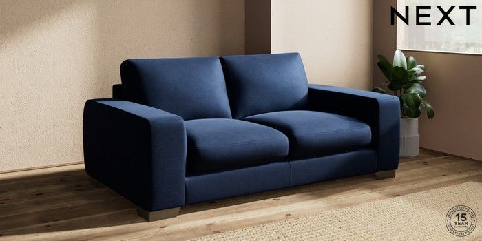 7.2.10 Houghton Deep Sit 3 Seater Small Sofa Luxe Chenille Navy Blue Large Square Angle - Gunmetal | Made Click here to use our website with more accessibility support, for example screen readers