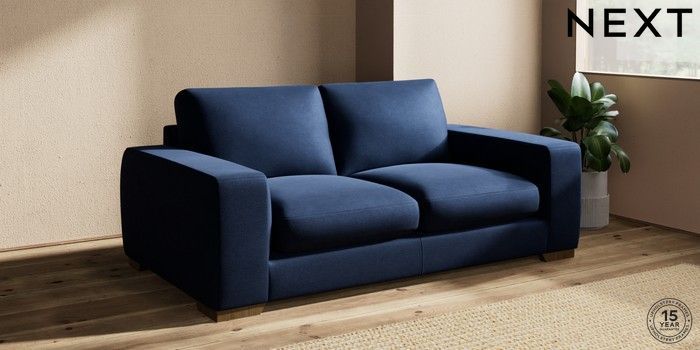 7.2.10 Houghton Deep Sit 3 Seater Small Sofa Luxe Chenille Navy Blue Large Square Angle - Mid | Made Click here to use our website with more accessibility support, for example screen readers
