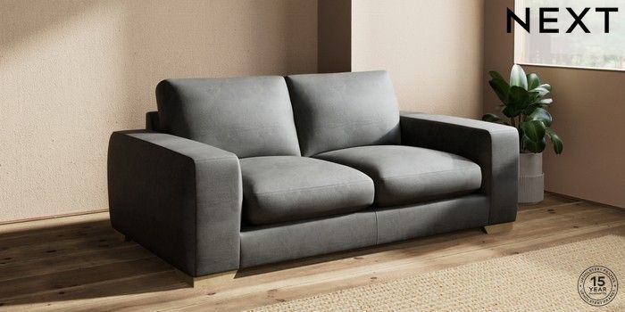 7.2.10 Houghton Deep Sit 3 Seater Small Sofa Monza Faux Leather Easy Clean Dark Grey Large Square Angle - Light | Made Click here to use our website with more accessibility support, for example screen readers