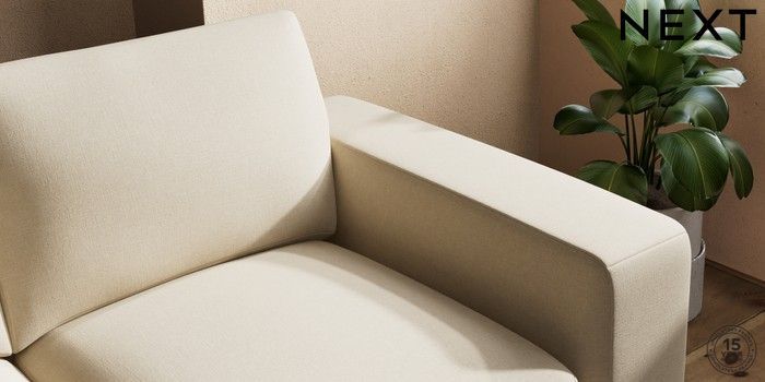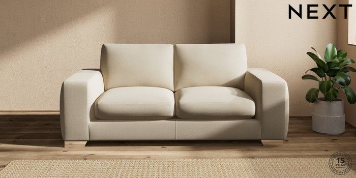 7.2.10 Houghton Deep Sit 3 Seater Small Sofa Natural Mix Light Natural Large Square Angle - Chrome Metal | Made Click here to use our website with more accessibility support, for example screen readers