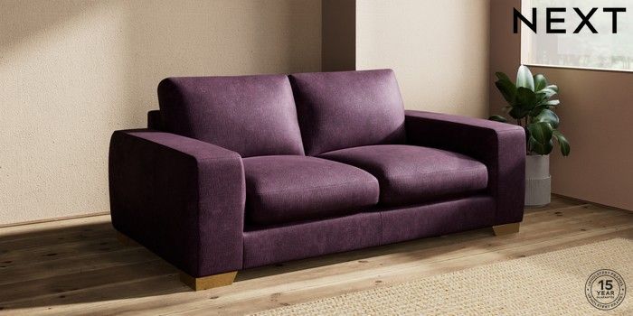 7.2.10 Houghton Deep Sit 3 Seater Small Sofa Plush Chenille Dark Plum Purple Large Square Angle - Brushed Brass | Made Click here to use our website with more accessibility support, for example screen readers