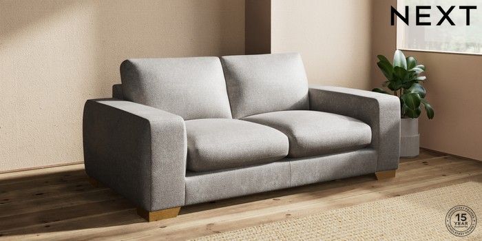 7.2.10 Houghton Deep Sit 3 Seater Small Sofa Plush Chenille Light Grey Large Square Angle - Brushed Brass | Made Click here to use our website with more accessibility support, for example screen readers