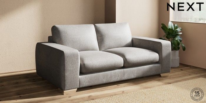 7.2.10 Houghton Deep Sit 3 Seater Small Sofa Plush Chenille Light Grey Large Square Angle - Chrome Metal | Made Click here to use our website with more accessibility support, for example screen readers