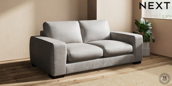 7.2.10 Houghton Deep Sit 3 Seater Small Sofa Plush Chenille Light Grey Large Square Angle - Dark | Made Click here to use our website with more accessibility support, for example screen readers