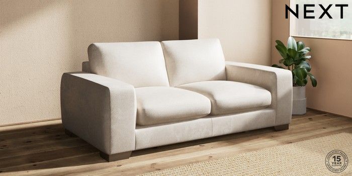 7.2.10 Houghton Deep Sit 3 Seater Small Sofa Plush Chenille Oyster Large Square Angle - Gunmetal | Made Click here to use our website with more accessibility support, for example screen readers