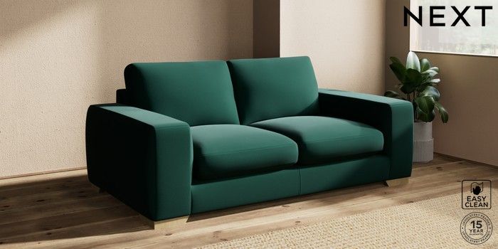 7.2.10 Houghton Deep Sit 3 Seater Small Sofa Plush Velvet Easy Clean Bottle Green Large Square Angle - Light | Made Click here to use our website with more accessibility support, for example screen readers
